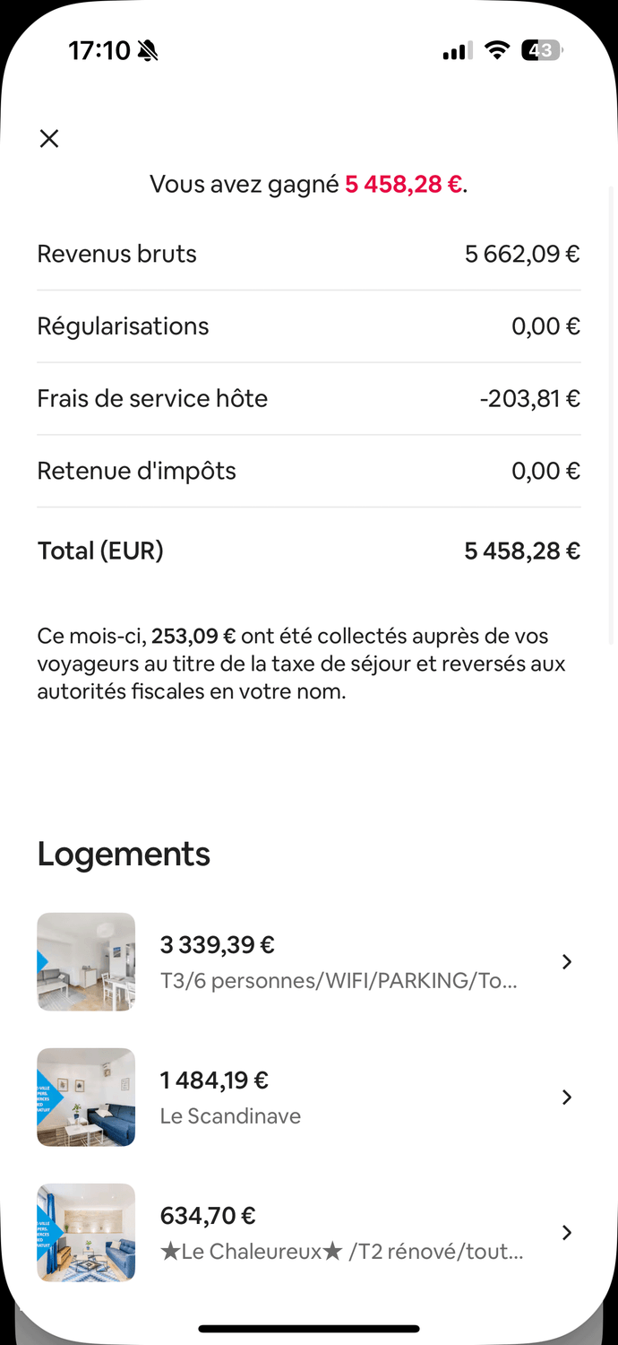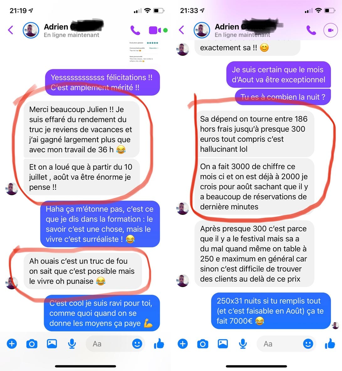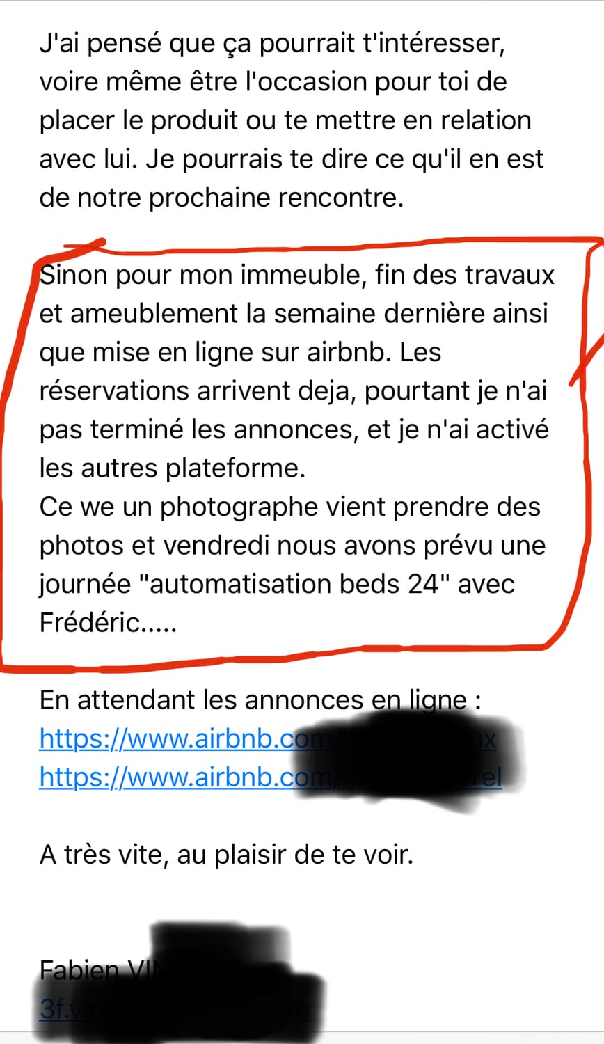 Le message d’Adrien quelques semaines après avoir mis en place la stratégie de location courte durée.