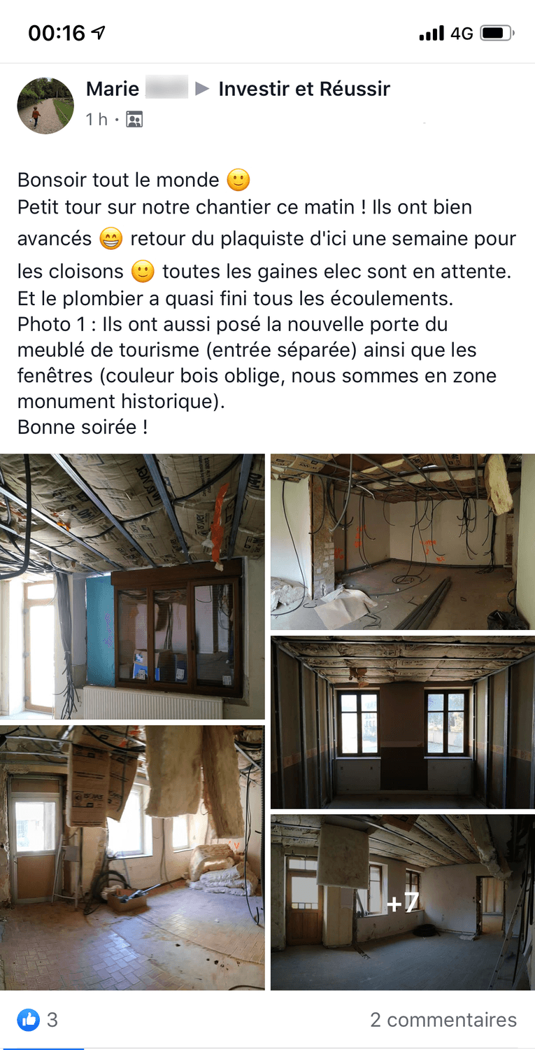 Marie partage l’avancement des travaux de son futur bien locatif.