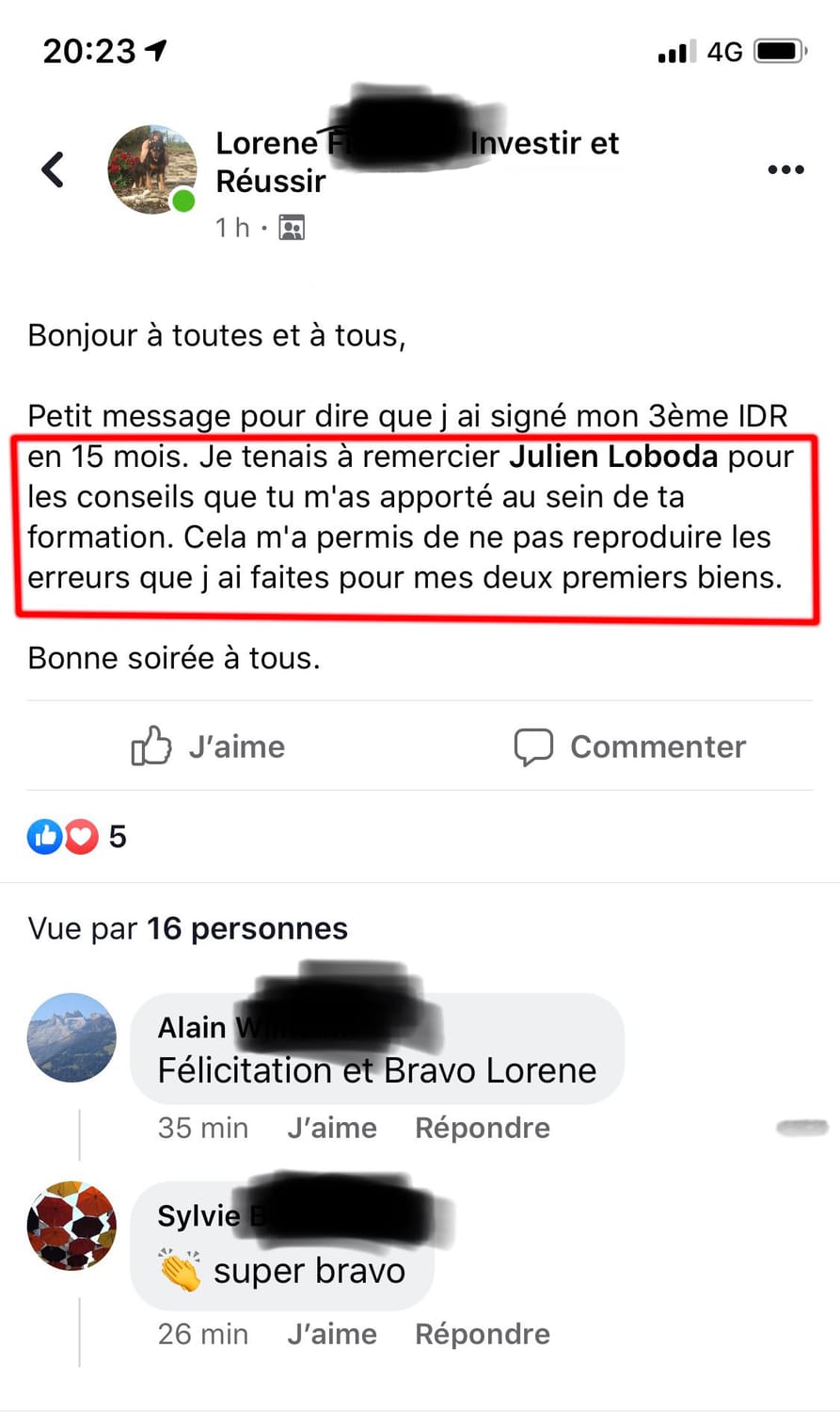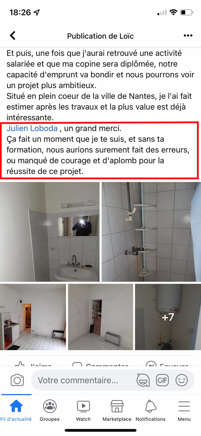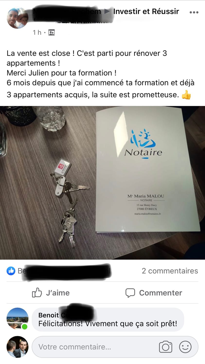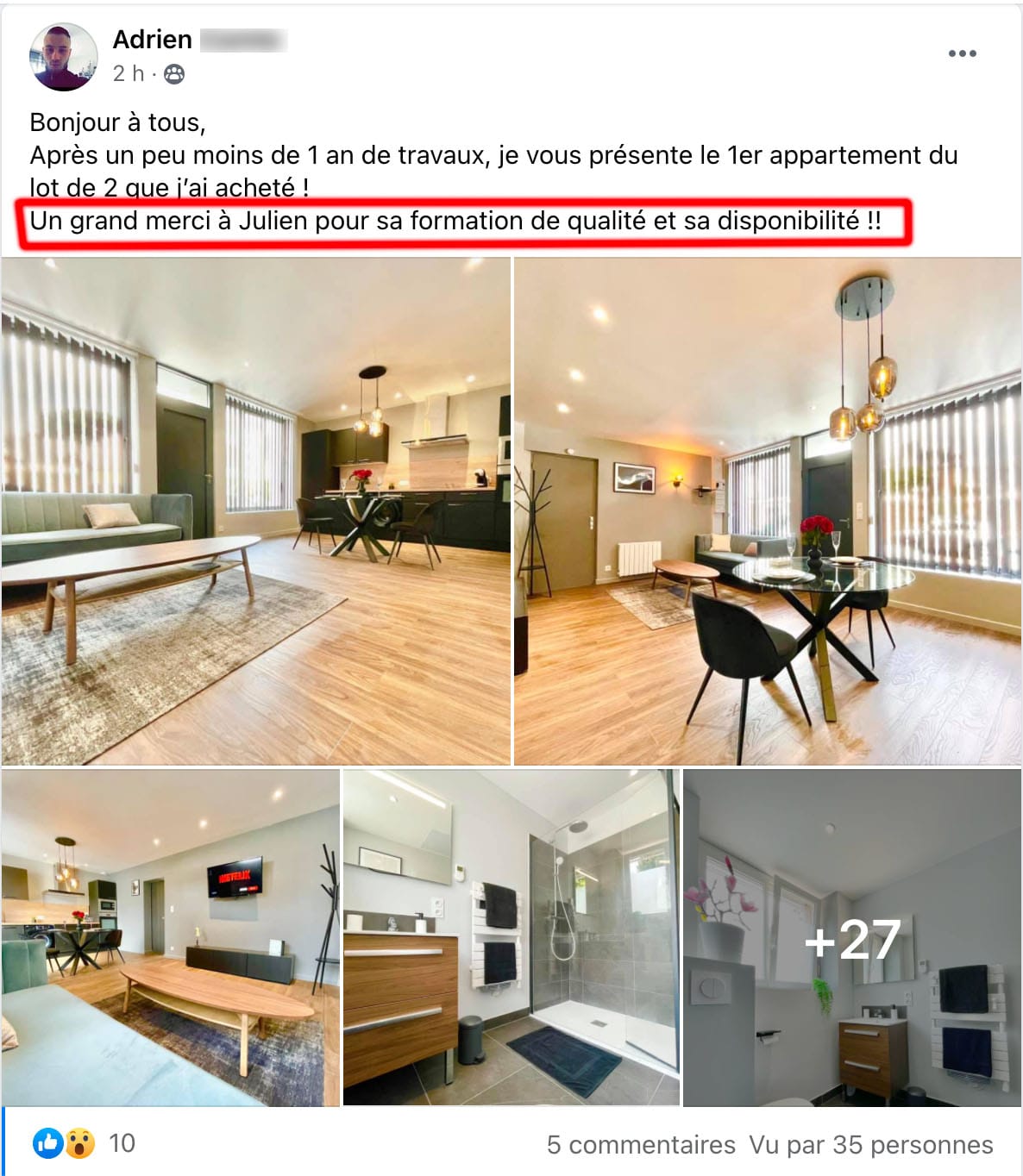"6 mois après avoir commencé la formation : déjà 3 appartements."