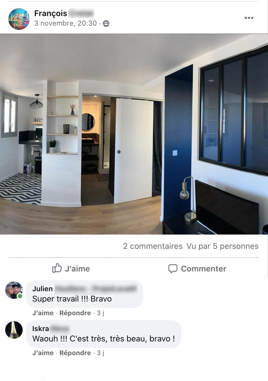 Le message de Fabien après le lancement de son projet de location courte durée.